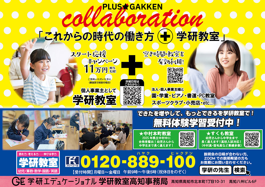 【学研エデュケーショナル】学研教室高知事務局 〒780-0056 高知市北本町1-10-31 高知八洲ビル6F